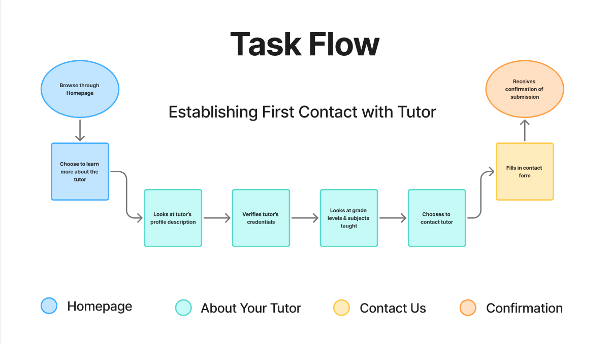 Prototyped the website and conducted usability testing with five participants to validate that the primary task flow—initiating first contact with a tutor—was clear and frictionless, leading to targeted refinements around branding clarity, CTA visibility, and human connection.